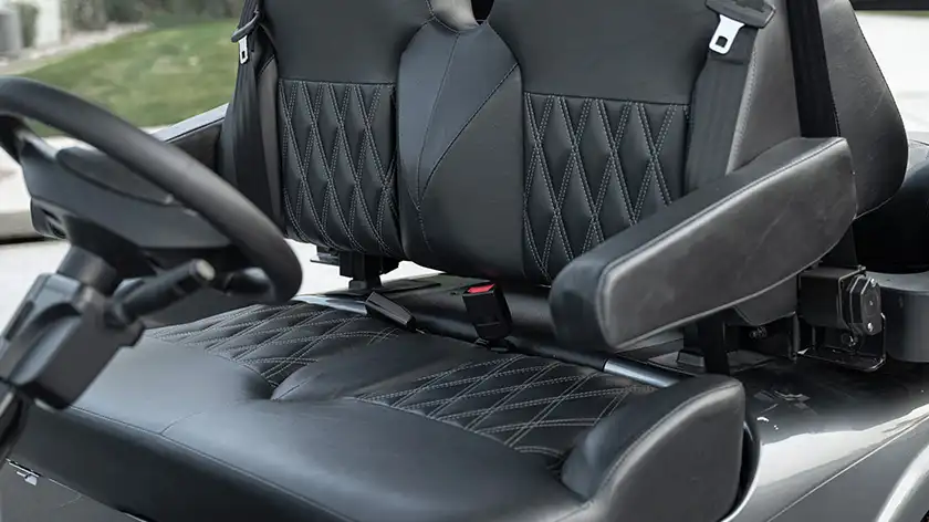 The E‑Z‑GO RXV 4‑Passenger is designed for comfort and flexibility. Standard padded bench seats accommodate four passengers, with an optional rear-facing jump seat for two additional passengers or extra cargo space. Weather-resistant, UV-protected upholstery ensures long-lasting durability in sun, rain, and everyday use.