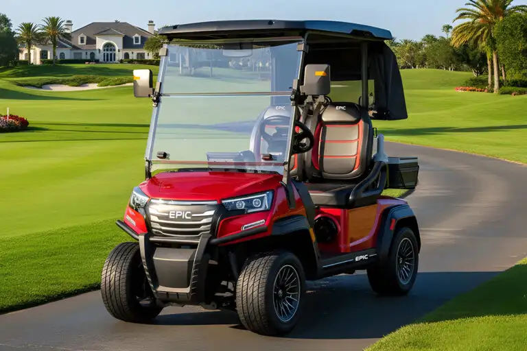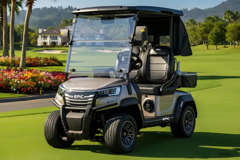 The Epic E20FX is a premium 2-passenger electric golf cart that blends compact design with an unusually high level of technology and features for its class. Positioned as a step above basic entry-level carts, the E20FX focuses on delivering a more refined driving experience with upgraded suspension, strong AC motor performance, and a tech-heavy interior.